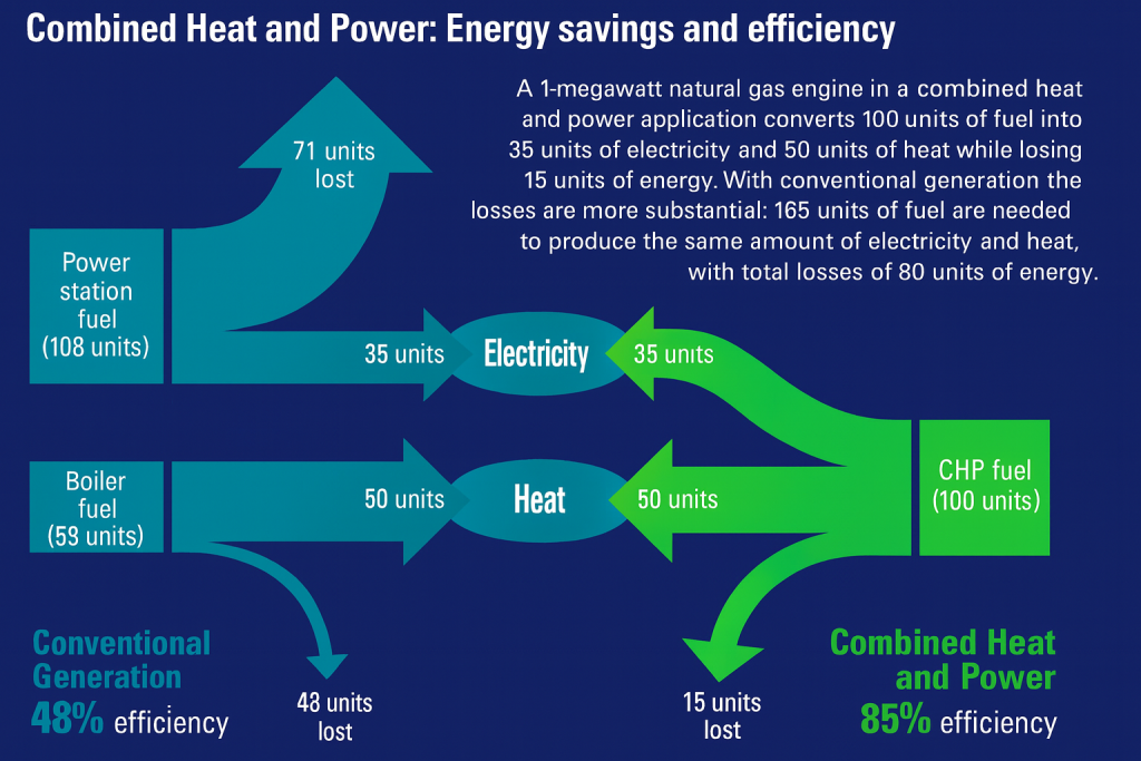 And unlike many renewable energy systems that depend on sun or wind conditions, CHP delivers consistent, on-demand power and heat.
